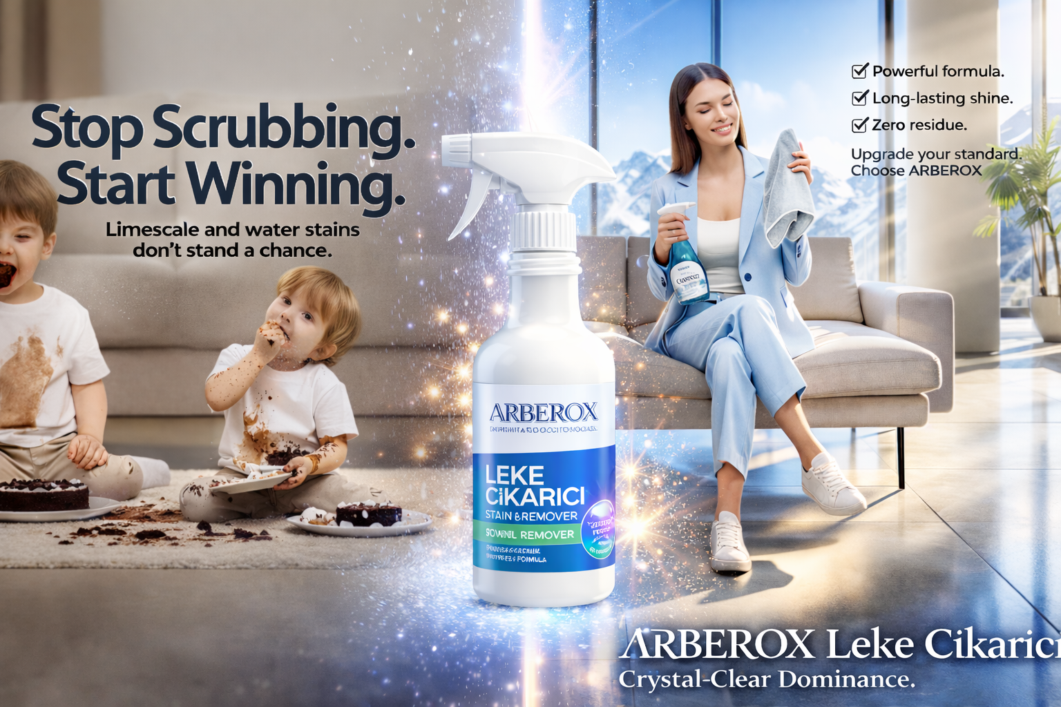 Günlük yaşamda karşılaşılan en büyük temizlik zorlukları olan kireç birikintileri ve inatçı su lekeleri artık Arberox gücü karşısında şanssız. Geliştirilmiş özel bileşenleri sayesinde Arberox Leke Çıkarıcı, kirli yüzeylerde saniyeler içinde tam hakimiyet kurarak kristal netliğinde bir temizlik sunar.